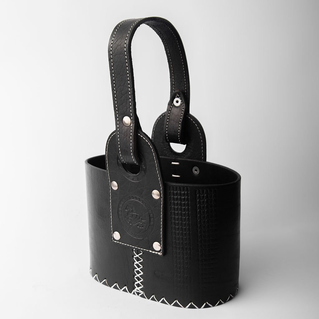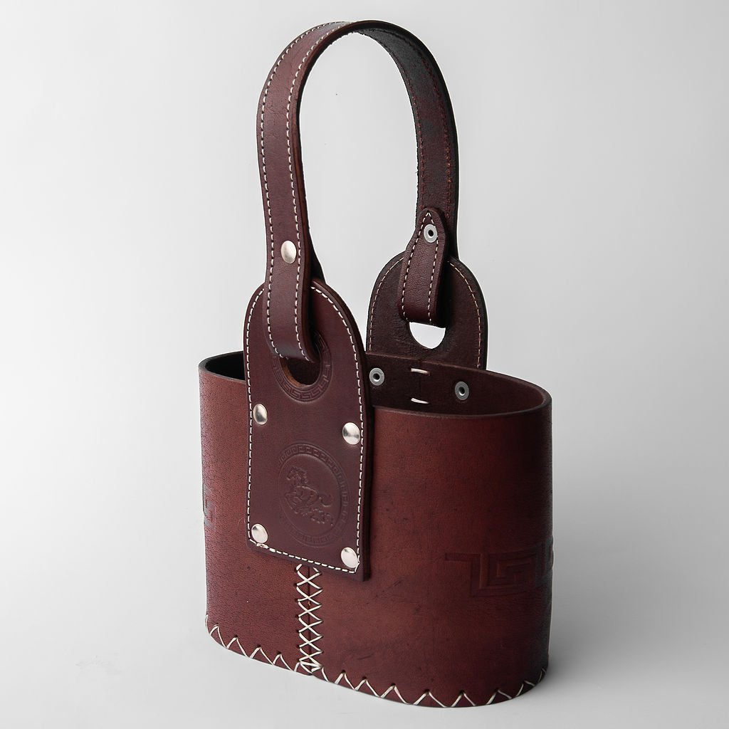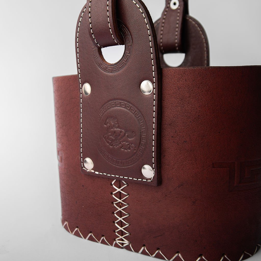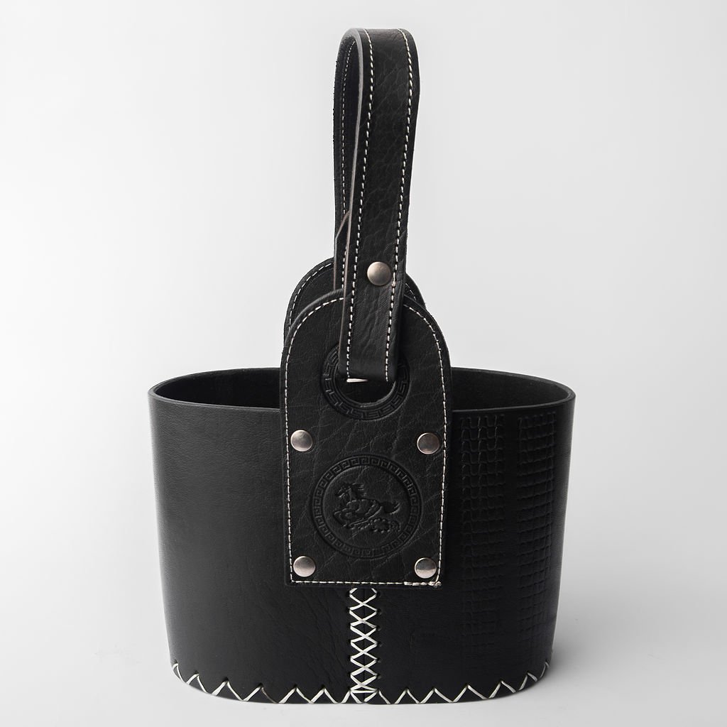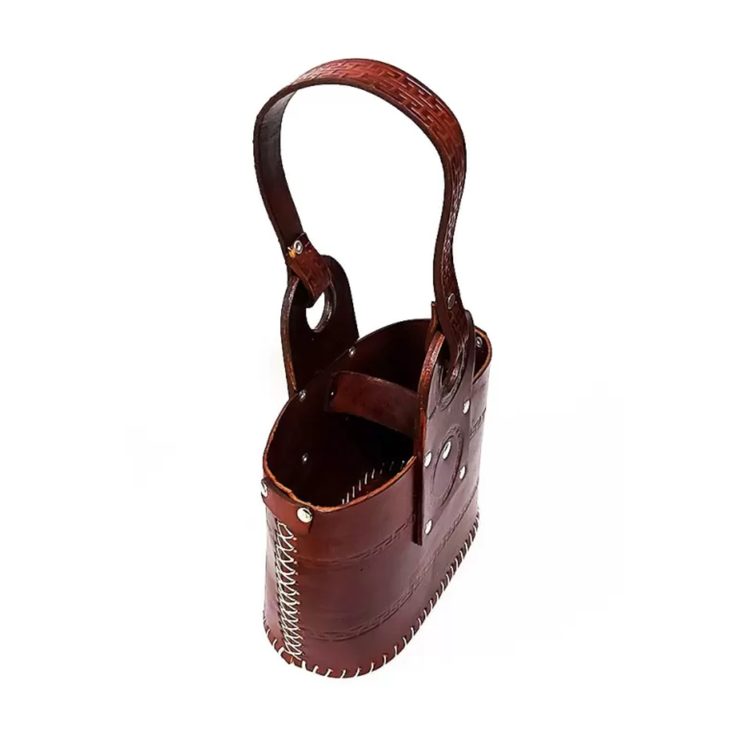 Canasta matera confeccionada en cuero premium, resistente y de gran calidad.