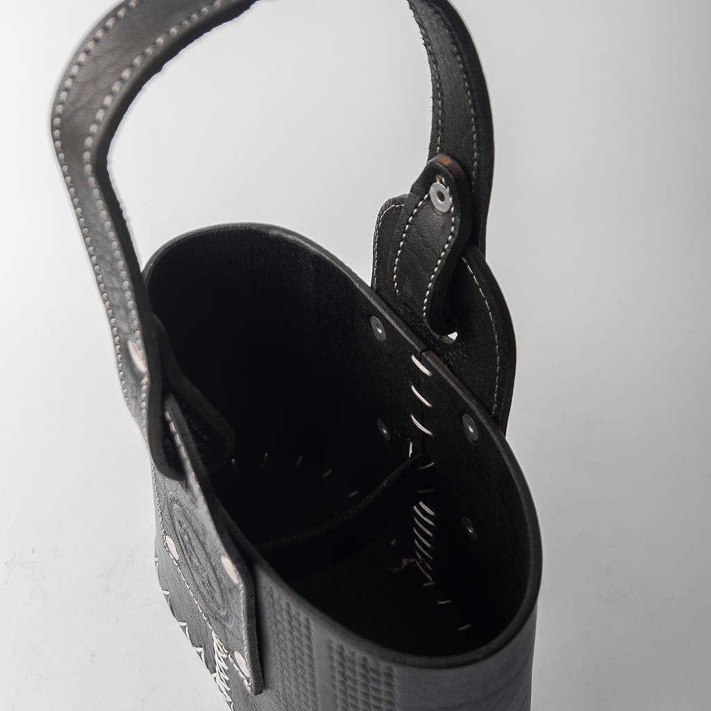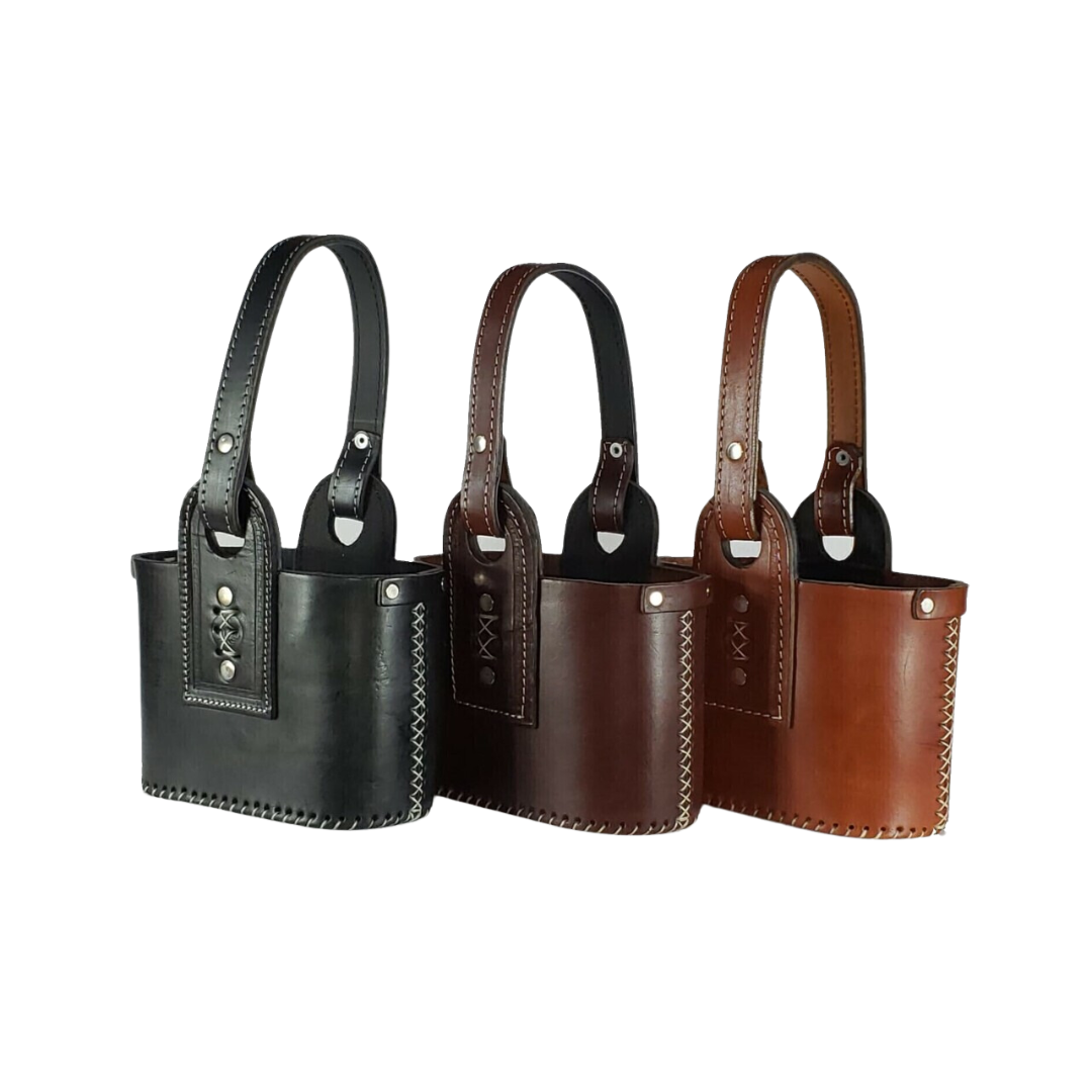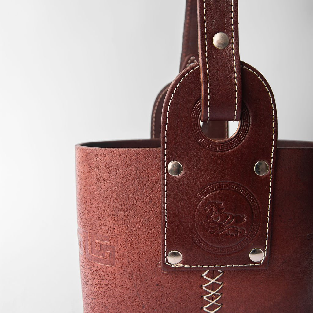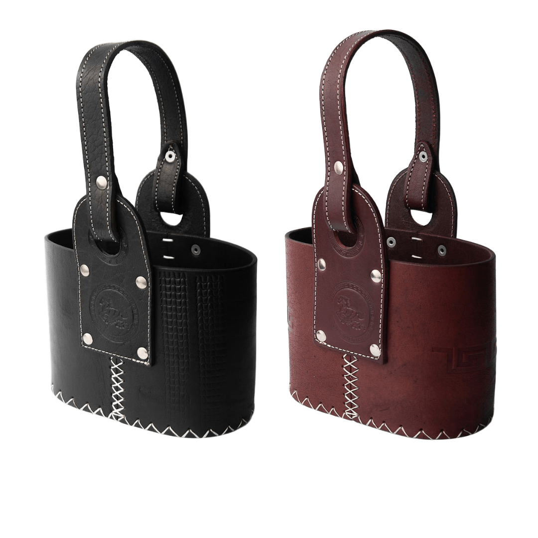 Canasta matera confeccionada en cuero premium, resistente y de gran calidad.