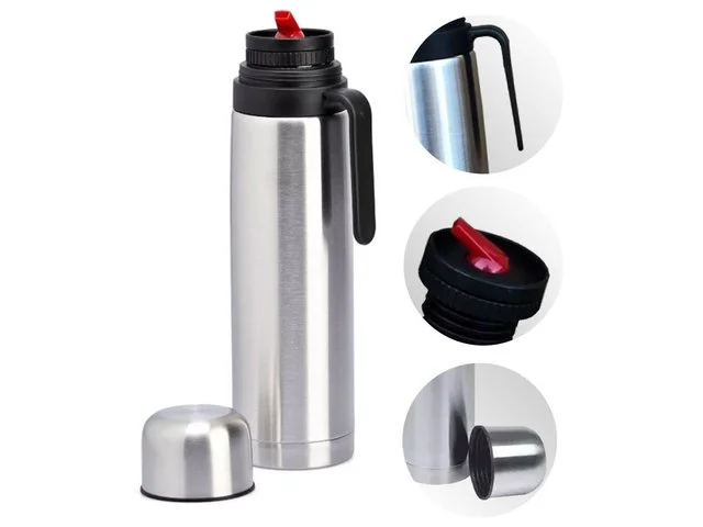 Capacidad: 1 litro . Fabricado en Acero Inoxidable con doble capa térmica. Mantiene el agua fría o caliente por hasta 8 horas